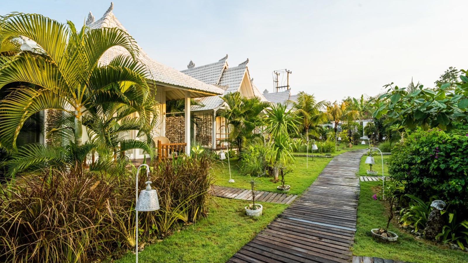 A peaceful garden view suite with a modern design, private terrace, and relaxing outdoor space for a calm and comfortable stay.