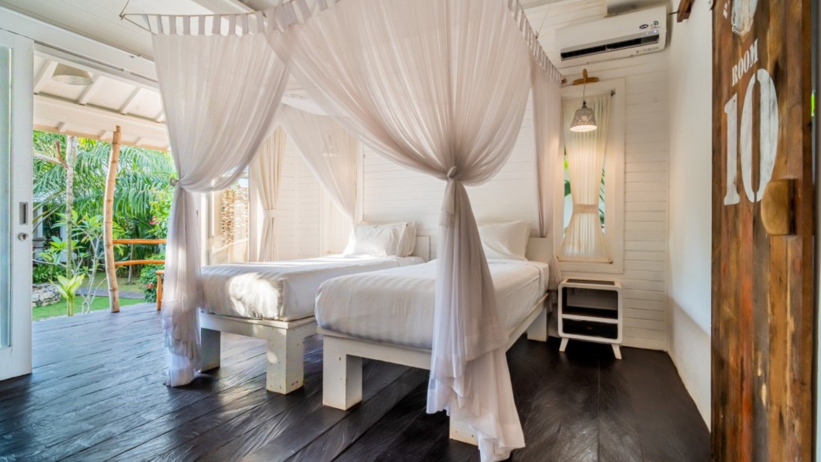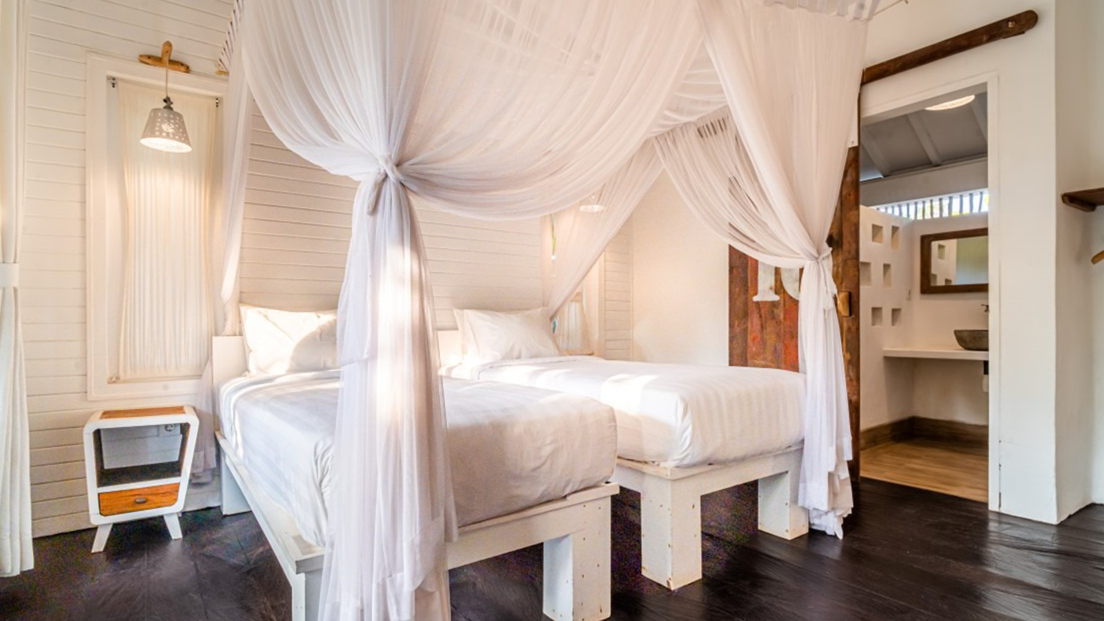 Hakugei Deluxe Twin Garden View offers a comfortable stay surrounded by a calm tropical garden. Designed in a modern, ethnic minimalist style, the room combines clean lines with natural elements to create a warm, relaxing ambiance.